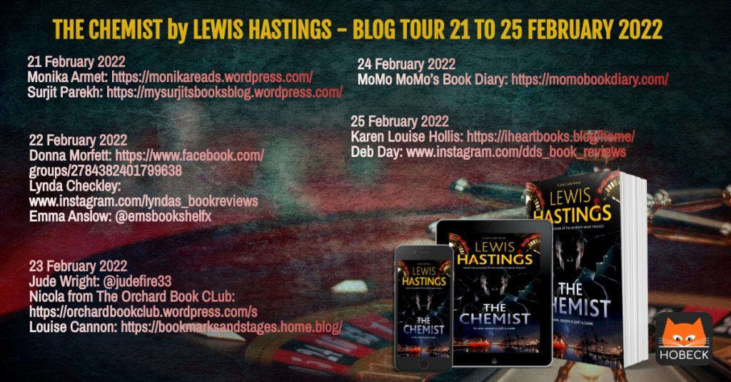 Welcome to my stop on the blog tour for The Chemist by Lewis Hasting, published on 22 February 2022.