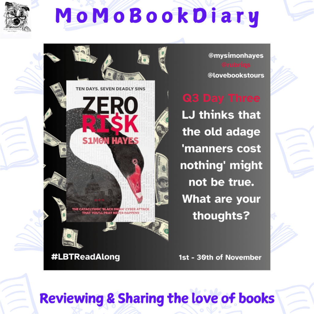 Tags: #ZeroRisk #SimonHayes #Rubriqs #LoveBooksTours #LBTReadAlong #LBTThriller #ZeroRiskReadAlong #BlackSwanThriller #LBTCrew #ZeroRiskReadalong #FinancialThriller #MustRead2024 #MustReadFiction #CyberCrimeFiction #crypticpuzzlefiction #Bookstagram #BookstagramScotland #bookcommunity #honestbookreviews #freebookreviewsalways