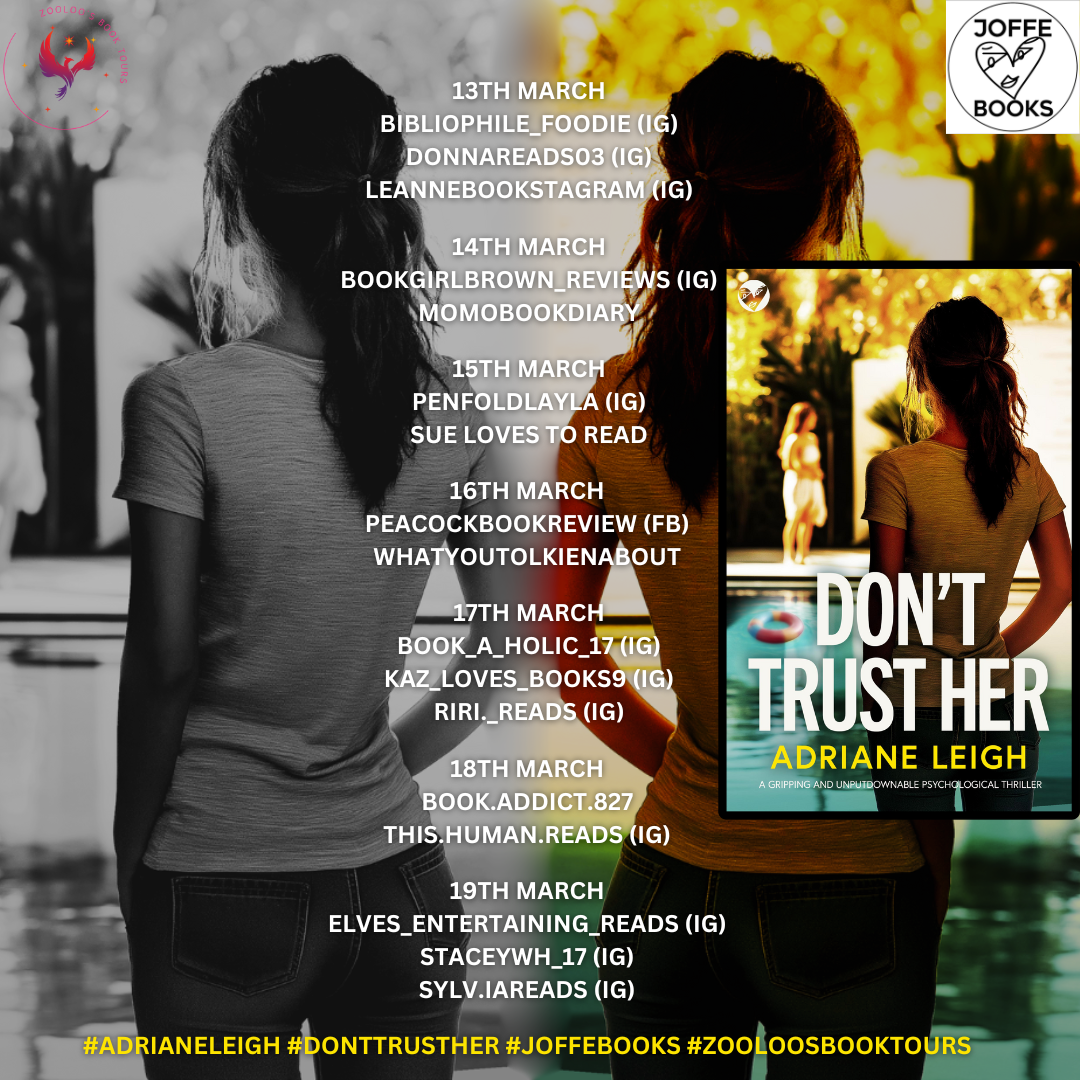 #AdrianeLeigh #DontTrustHer #JoffeBooks #ZooloosBookTours #VirtualBookTour #BookReview