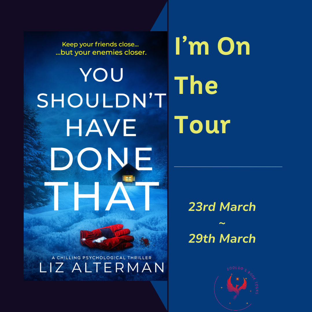 The You Shouldn’t Have Done That book tour, hosted by Zooloo’s Book Tours, runs from 23 to 29 March. Be sure to check out the Book Tour Schedule and follow along to see what others are saying about this gripping psychological thriller!