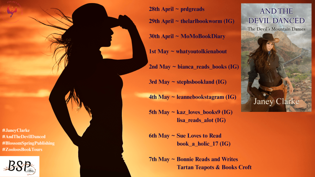 #AndTheDevilDanced #JaneyClarke #TheDevilsMountainDames #BlossomSpringPublishing #ZooLoosBookTours #VirtualBookTour #HistoricalFiction #Western #Romance #BookReview