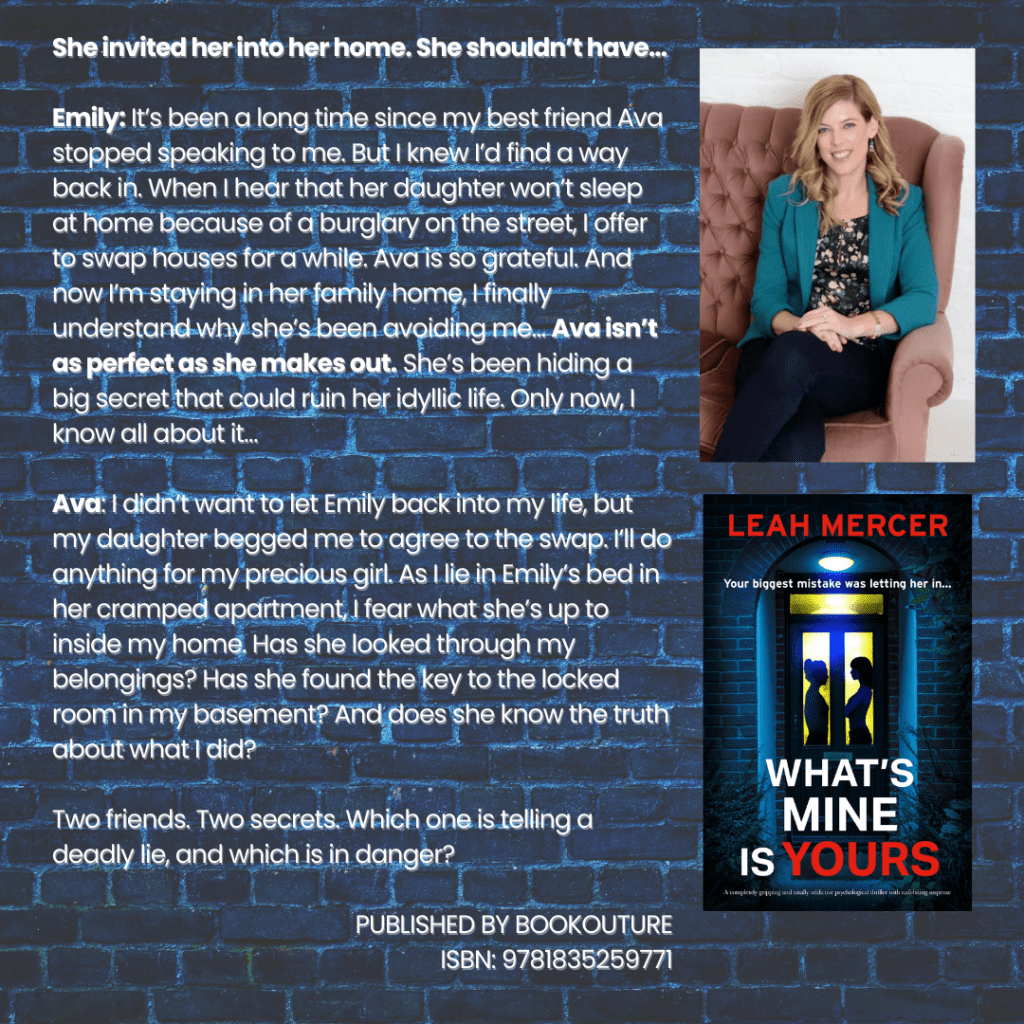 #WhatsMineIsYours #LeahMercer #Bookouture #BooksOnTour #NetGalley #digitalarc #bookreview #VirtualBookTour