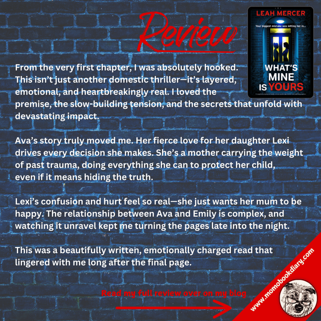 What’s Mine is Yours is a beautifully written, deeply emotional thriller that manages to be both tense and touching. It’s not just about lies and secrets, it’s about love, guilt, motherhood, and the things we try to hide in the name of protection. An absolute standout read that I won’t forget.