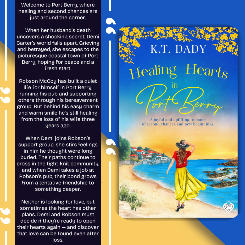 Healing Hearts in Port Berry – book 5 in the Port Berry series – by K.T. Dady is published by ChocLit / Joffe Books on 8 July 2025