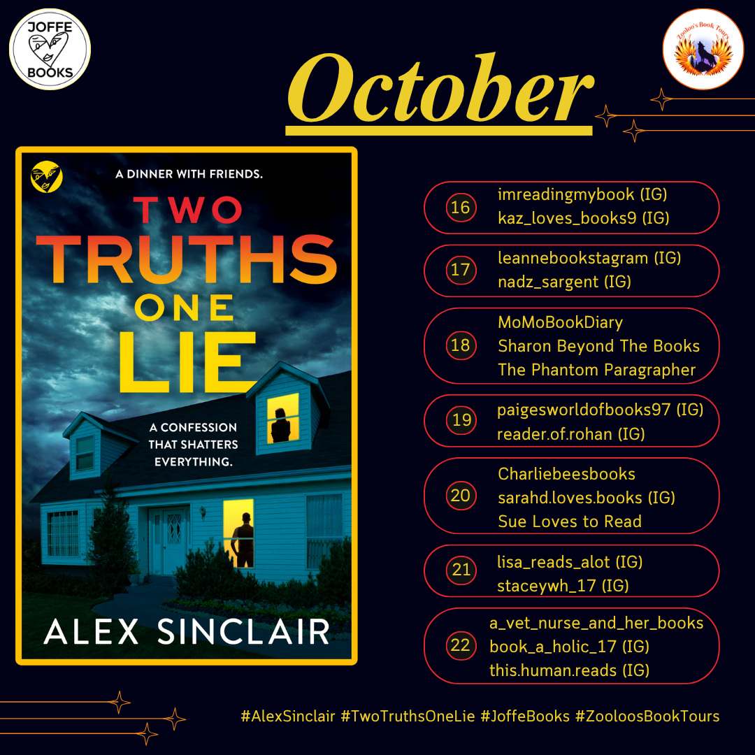#AlexSinclair #TwoTruthsOneLie #JoffeBooks #ZooloosBookTours #NetGalley #VirtualBookTour #BookReview