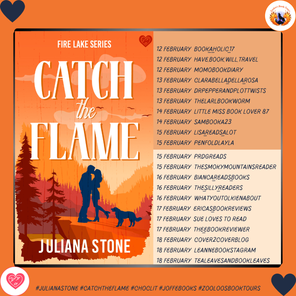 This brand-new, spicy romance, Catch The Flame is the first book in the Fire Lake Series from bestselling author Juliana Stone. It is published by ChocLit on 12 February 2026 and is available from all good bookshops. Curious to see what other readers think? You can find reviews and ratings on Goodreads, and follow the book tour via Zooloo’s Book Tours. The digital edition is available now on Amazon.