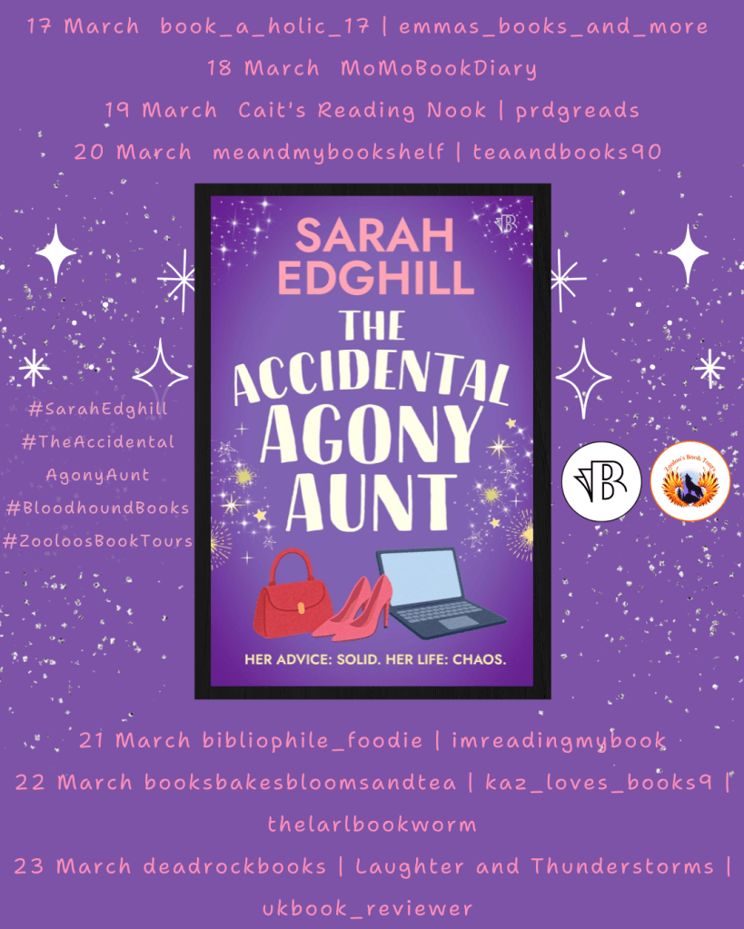 The Accidental Agony Aunt by Sarah Edghill was published by Bloodhound Books on 17 March 2026 and you can find out more about the book on Amazon, Goodreads and Storygraph