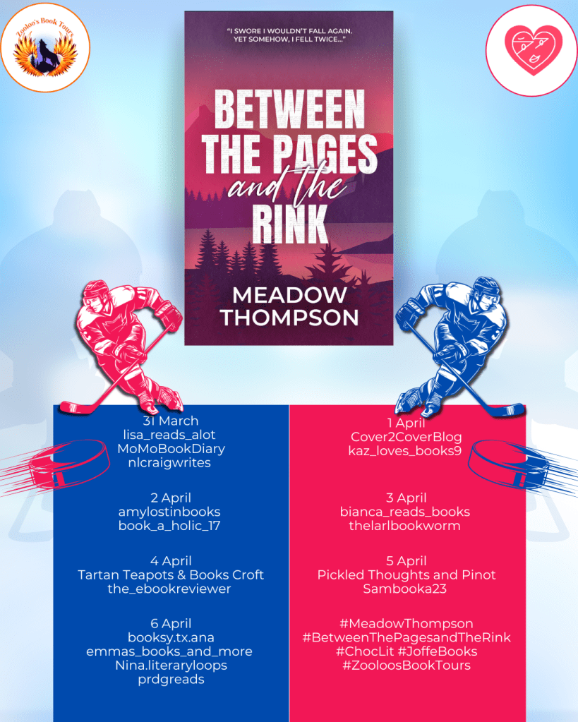 Between The Pages and the Rink by Meadow Thompson is published by Choc Lit on 31 March 2026 and you can find out more about the book on Amazon, Goodreads and Storygraph